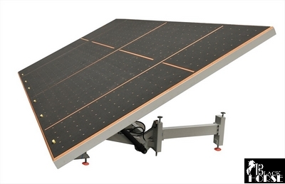 Аппарат для разлома стекла в ручном режиме CMS CKM используется для разлома нарезанного стекла в ручном режиме и снятия стекол больших размеров. Для снижения трения стекла с поверхностью применяется система воздушной подушки с предупреждением вибрации и функцией равномерного распределения воздуха на поверхности столешницы. Столешница меняет положение в вертикальное и горизонтальное для выгрузки стекла с помощью гидравлической системы. Разломочные рейки, применяемые для разлома нарезанного стекла приводятся в движение по осям X и Y с помощью пневматической системы. Аппарат обеспечивает плавную остановку благодаря наличию электронной функции замедления в конце движения.