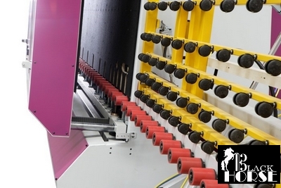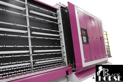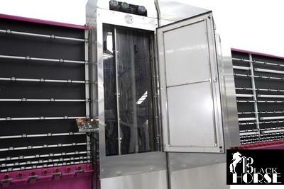 Направление работы линии справа налево. Транспортировка тяжелых стекол производится с помощью привода с отдельным редуктором и цепной передачей, для стекол предусмотрены опоры. Управление скоростью работы линии осуществляется посредством панели управления. Линия мойки оборудована сушильным вентилятором, фильтром для воды и электрической нагревательной системой. Резервуар для воды разделен на отсеки для воды для каждой камеры мойки. Автоматическое добавление воды обеспечивается поплавковой системой, критический уровень воды контролируется с помощью магнитной системой датчиков.