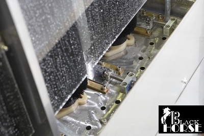 Прессование двойных, тройных и ступенчатых стекол производится при помощи автоматической гидравлической системы.В блоке прессования работает системы воздушной подушки. Прессование осуществляется как в автоматическом, так и в ручном режиме. Управление прессованием осуществляется при помощи панели управления с сенсорным дисплеем.
