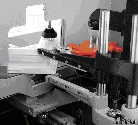 , предназначенной для малых производств. В конструкции станка совмещена возможность фрезеровки импоста под различными углами, а также зачистки сваренных углов ПВХ-окон. Удаление сварочного наплава производится фрезой и зачистными ножами.