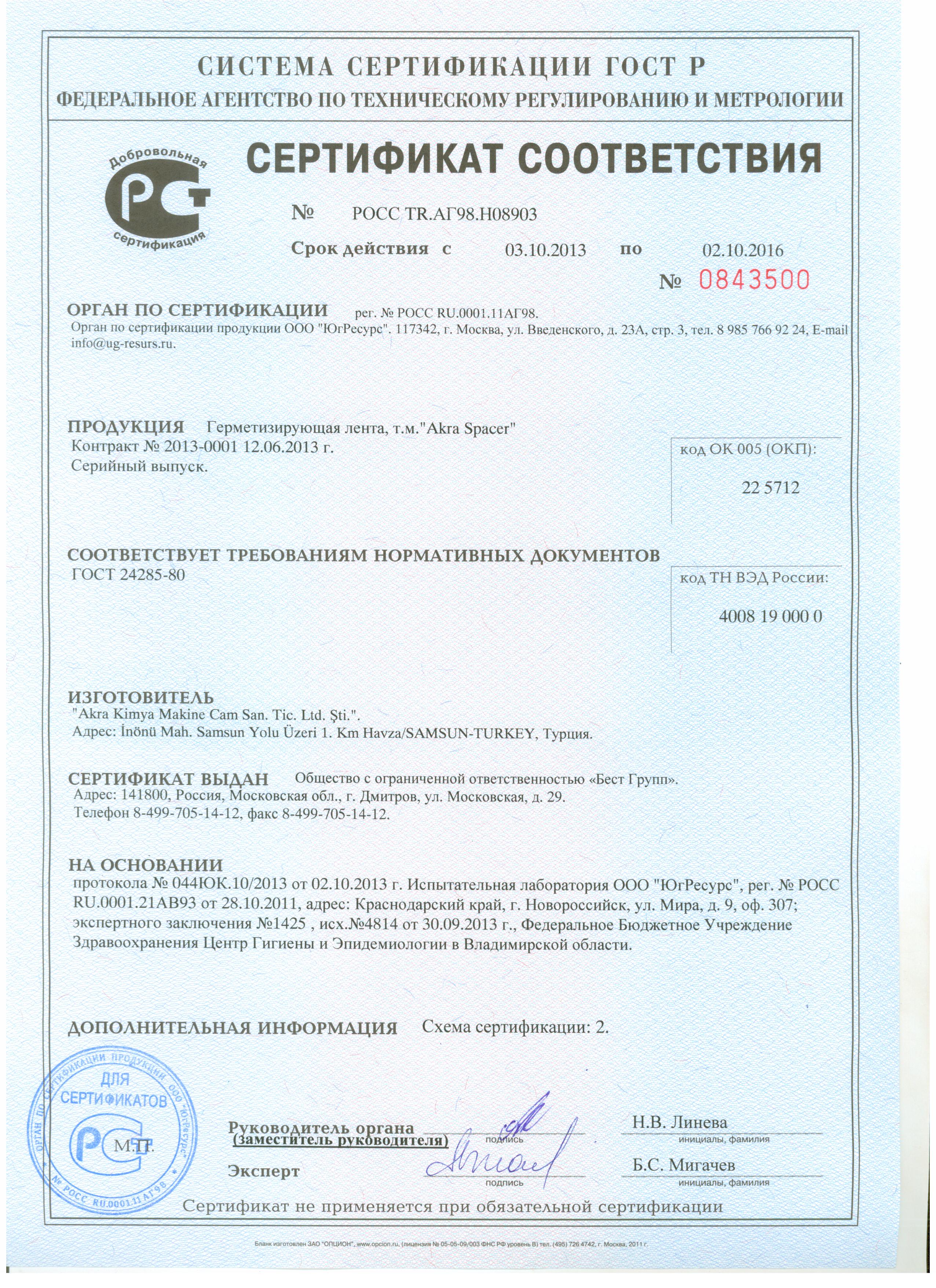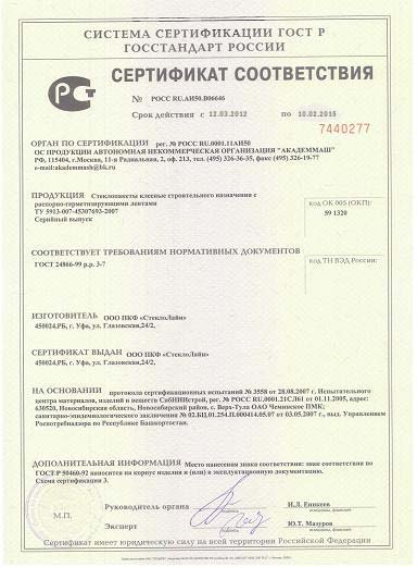 Сертификат соответствия на стеклопакеты клееные строительного назначения с распорно-герметизирующими лентами